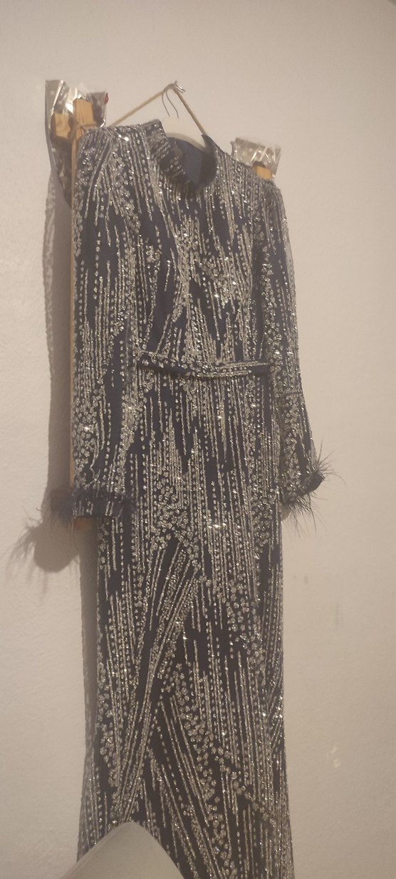 Parlak lacivert balık abiye çok iyi durumda 1 defa kullanıldı
