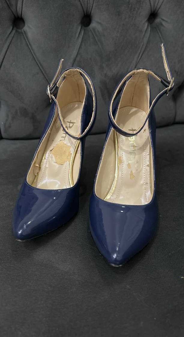 Lacivert bantlı Stiletto kadın ayakkabı
