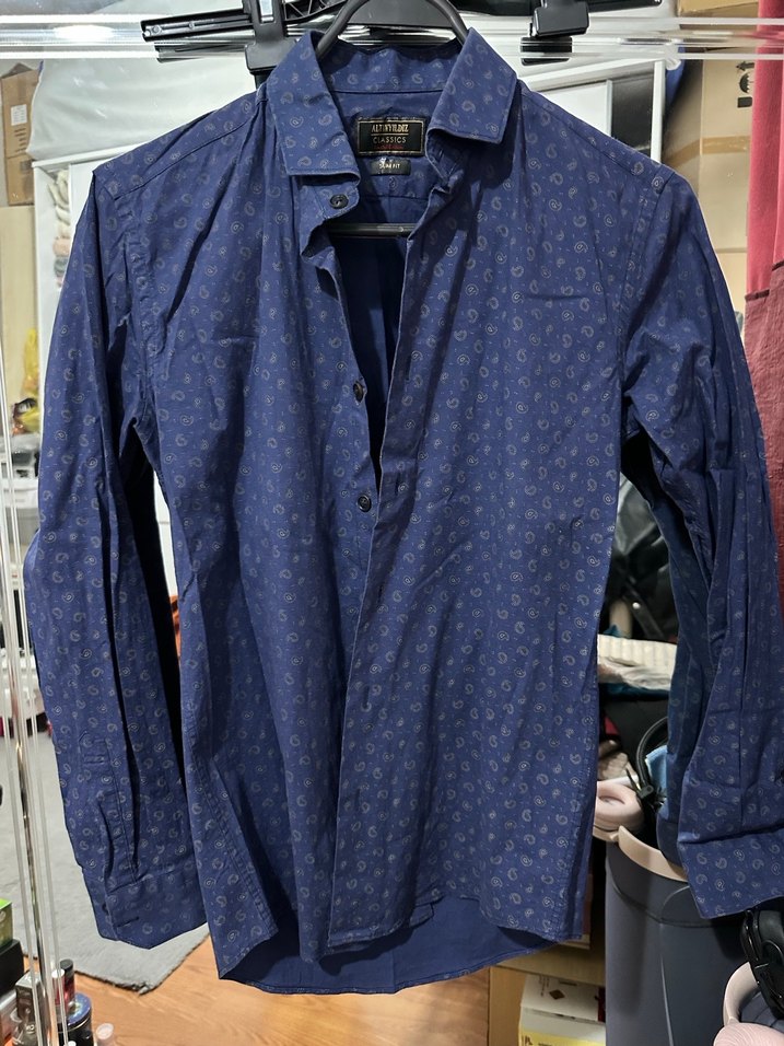 Lacivert desenli slim fit erkek gömlek