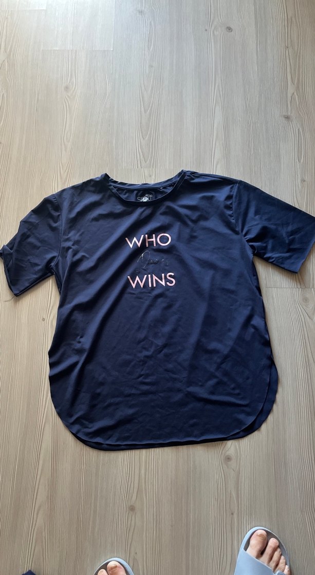 Lacivert baskılı hamile tişörtü, kısa kollu ve bol kesim. Sentetik kumaştan, spor ve günlük kullanıma uygun rahat bir model.
