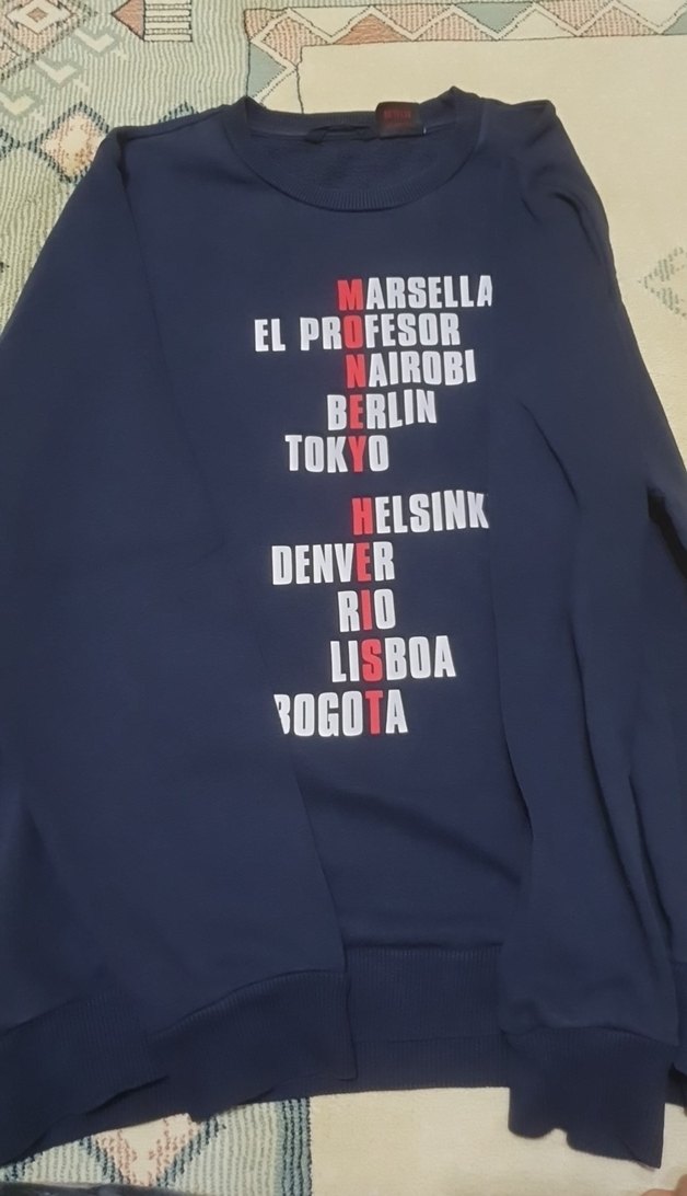 Lacivert renkli, uzun kollu ve yuvarlak yakalı bol kesim sweatshirt. Önünde çeşitli şehir isimleri baskılıdır, sentetik kumaştan üretilmiştir.