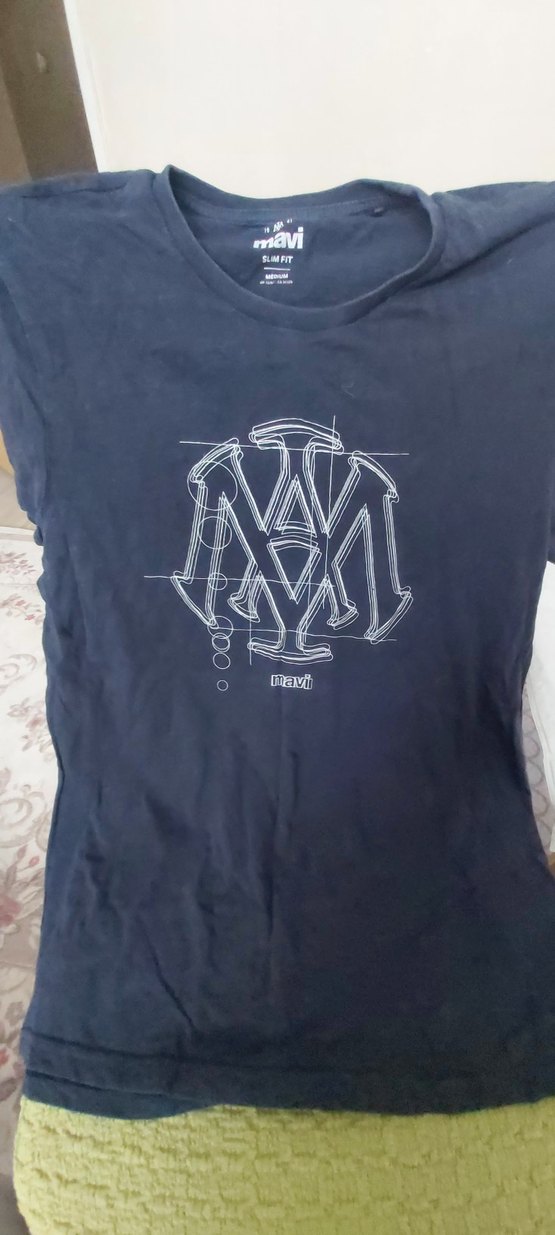 Lacivert renkte, denim kumaştan yapılmış, baskılı ve kısa kollu, dar kesim erkek tişörtü. Günlük kullanıma uygun, sokak stili ve athleisure tarzında.