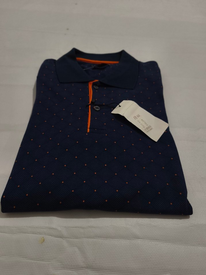 Lacivert baskılı, düğmeli yakalı, kısa kollu erkek polo tişört. Regular fit kesimi ve sentetik kumaşıyla günlük rahatlık sunar.