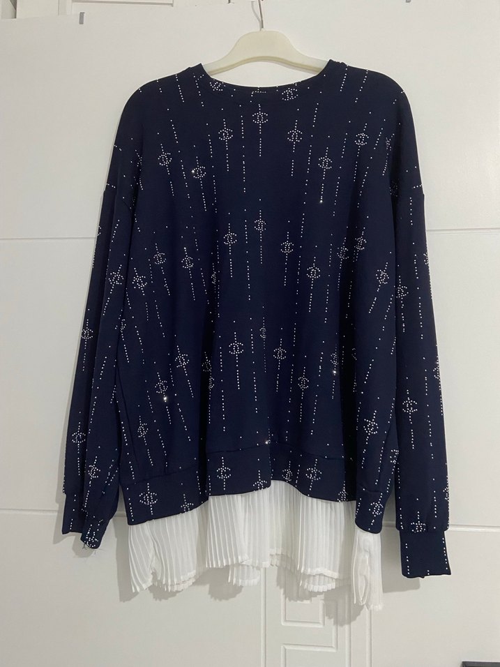 Lacivert Baskılı Piliseli Midi Kadın Kazak