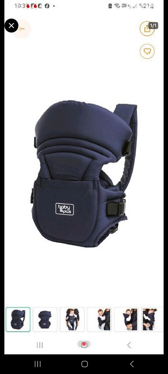 Lacivert renkte, ayarlanabilir tokalar ve ön cepli, rahat taşıma sağlayan dolgulu askılı bebek kangurusu.