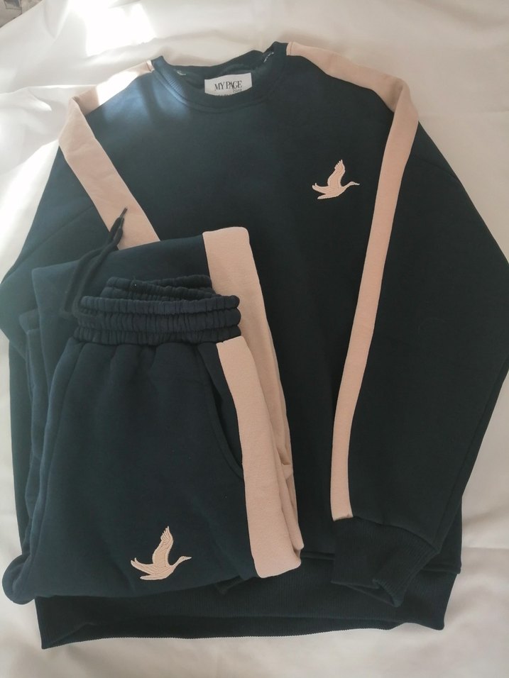 Lacıvert ve bej renklerde, kuş figürlü, bol kesim erkekte bayana da olur spor eşofman takımı. Rahat ve günlük kullanım için uygundur. ️s beden görünüyor ama m ve L bedenede rahatlıkla olur içi tüylü kalın penye kışlık