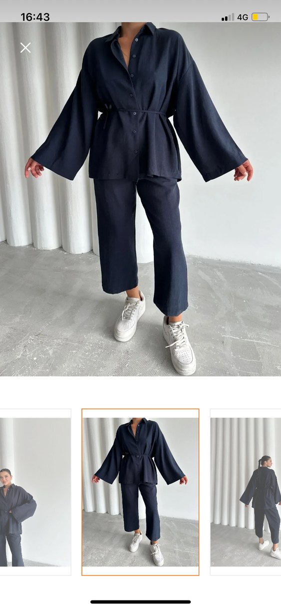 Lacivert beli bağlama ipli geniş kol gömlek pantolon takım
