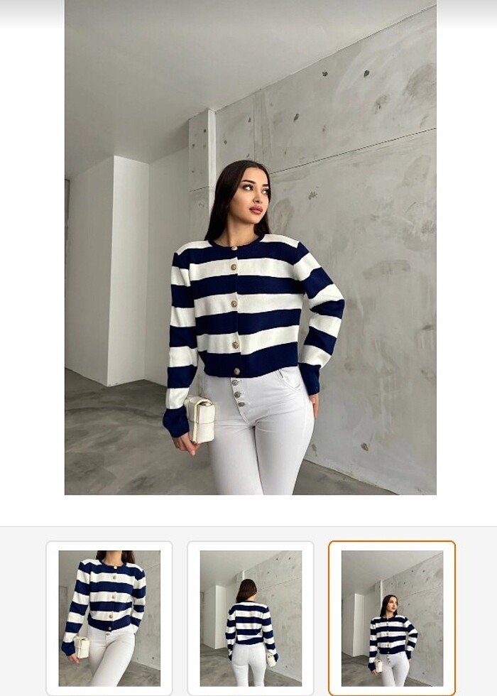 Lacivert beyaz çizgili düğmeli kazak
