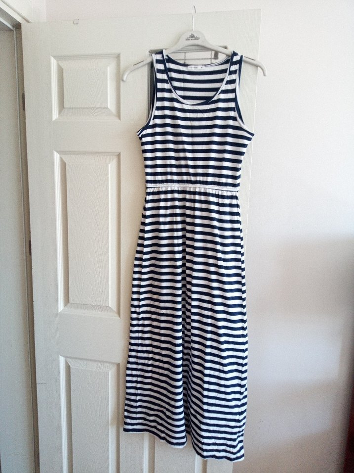Lacivert Beyaz Çizgili uzun elbise