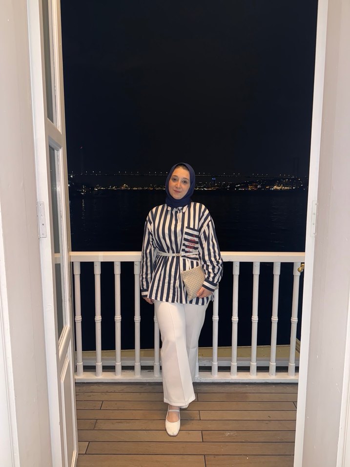 Lacivert beyaz Zebra Desenli Midi Tunik