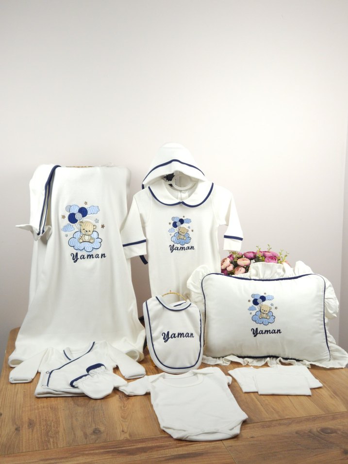 Lacivert Biyeli Erkek Bebek 10 parça Hastane Çıkışı