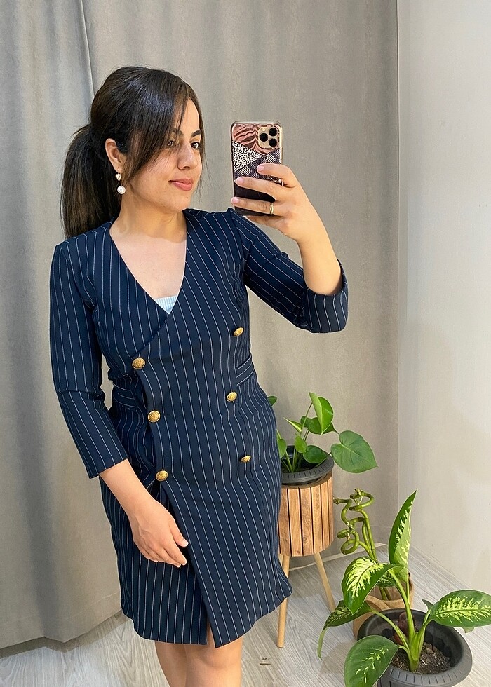 Lacivert önü düğmeli blazer elbise Boyu 90 cm iki koltuk altı arası 40 cm baseni 45 cm ’dir XS/S/M bedenlere rahatlıkla olabilecek şahane ötesi blazer elbise