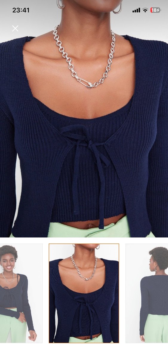 Lacivert crop bağlama detaylı bluz hırka triko takım Sadece 1 kez giydim yeni gibi