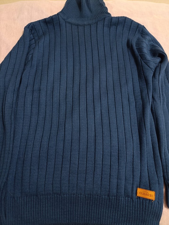 Boğazlı, uzun kollu, triko dokulu, fitted kesim lacivert kazak. Günlük ve sokak stiline uygun normal uzunlukta.