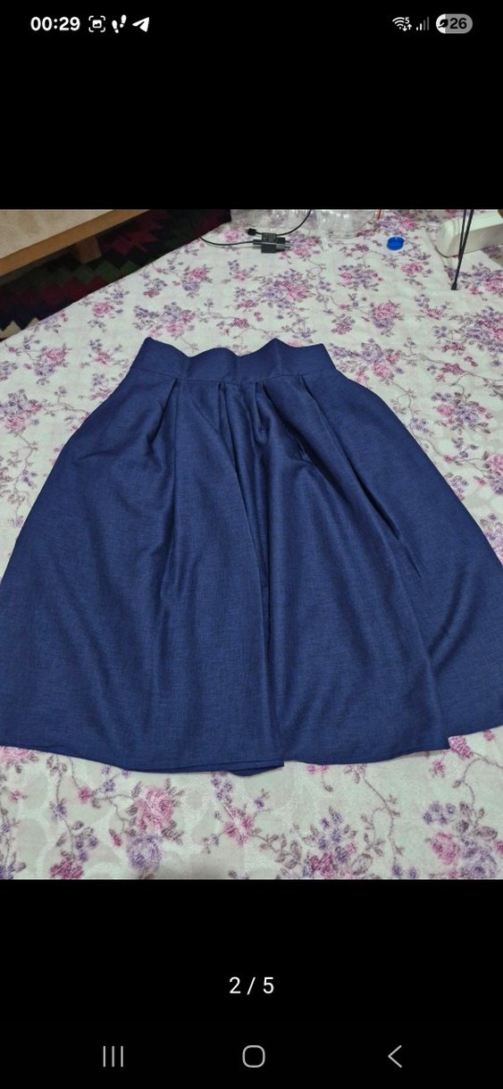 yumuşak sentetik kumaştan yapılmış, bol kesim ve fırfırlı mavi bohem tarzda kız çocuk eteği.