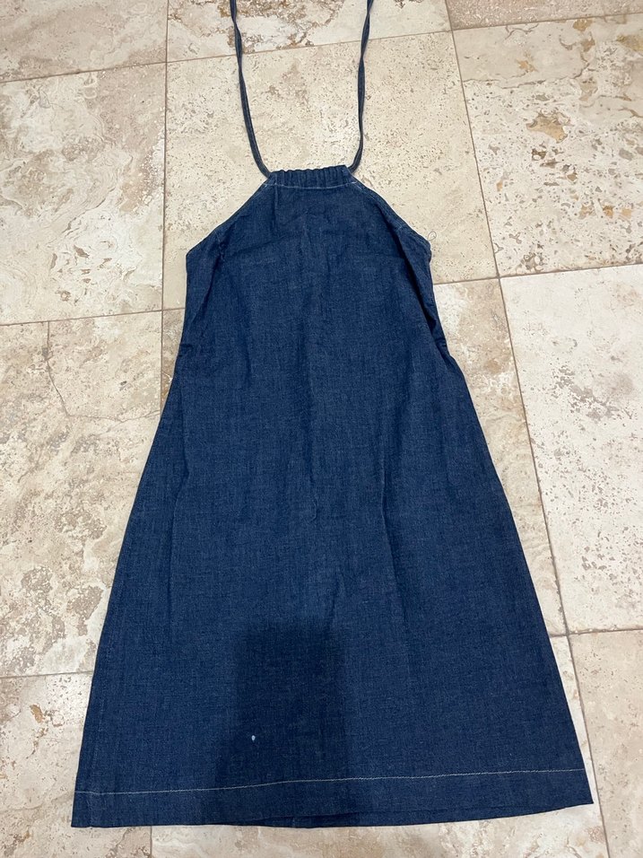Lacivert kot kumaştan, askılı, straplez yaka ve kolsuz,bohem midi elbise. Günlük kullanıma uygundur.
