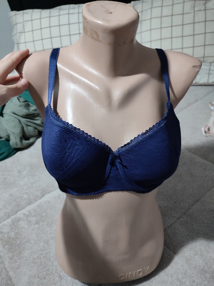 Lacivert renkte, bohem tarzda, desensiz ve normal uzunlukta askıları olan rahat sütyen.