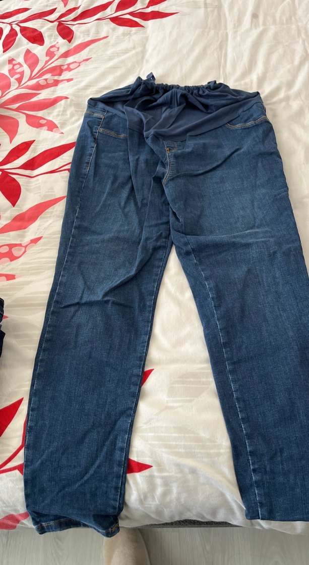 Lacivert bol kesim hamile kot pantolon, tokalı bel detayı ile günlük rahatlık sağlar. Normal boyda ve günlük kullanıma uygun tarzda.