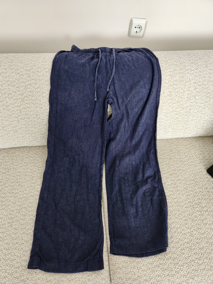 Lacivert renkte, bol kesim ve keten pantolon. Rahat ve gündelik normcore tarzıyla kolay şıklık sağlar.