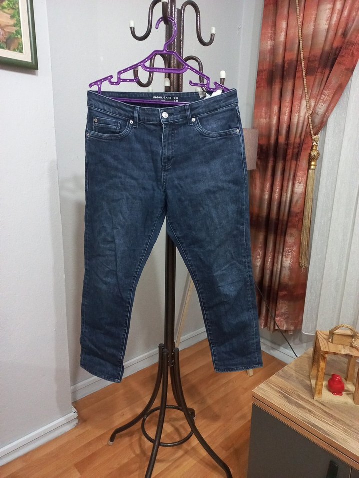 Lacivert renkte, bol kesim ve midi boy kot pantolon. Tokalı detayıyla günlük ve normcore tarzına uygun rahat bir model. likralidir