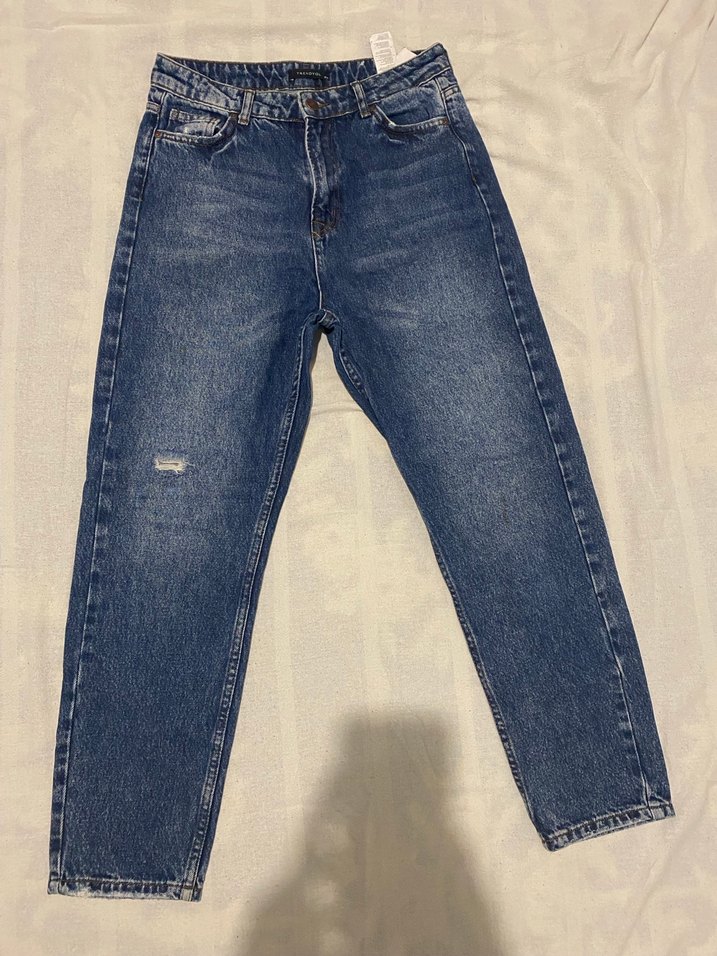 Lacivert renkli, bol kesim ve midi boy kadın kot pantolon. Günlük kullanım için rahat ve şık bir sokak stili sunar.