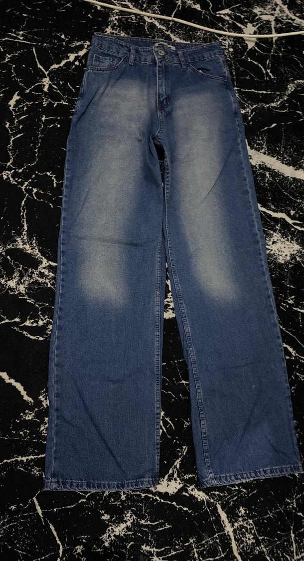 Lacivert bol kesim midi uzunlukta kot pantolon, sade ve desen içermeyen tasarımıyla zahmetsiz şıklık sunar. Günlük kullanım için uygun, sokak modası tarzında.