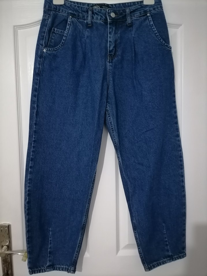 Lacivert renkte, bol kesim, midi boy kadın kot pantolon. Denim kumaştan yapılmış, desen içermeyen, günlük kullanıma uygun rahat bir sokak stili sunar.