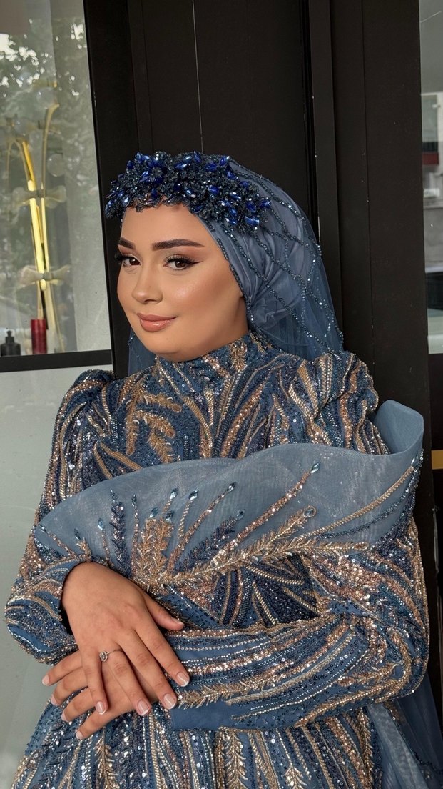 İndigo mavi, Lacivert boncuklarla süslenmiş örme kadın saç aksesuarı, bohem ve avangart tarzı sevenler için ideal. Bir kez nişanda kullanıldı özel yapımdır pazarlık payı vardır