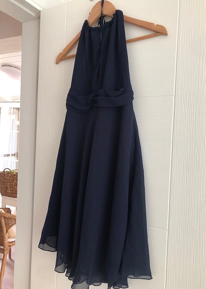 Lacivert boyundan bağlamalı şık elbise - Görsel 4
