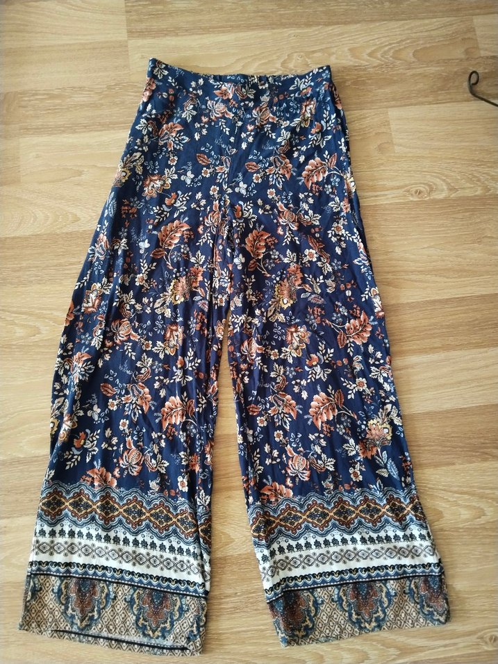 Lacivert renkli, bol kesim beli lastikli kumaş pantolon...beli esnetmeden 37 cm 10 cm e kadar esniyor basen 48 boyu 99 cm