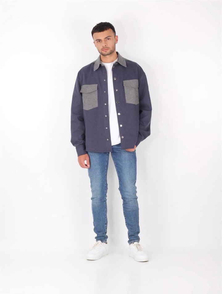 Lacivert cıt cıt erkek oversize gömlek ceket