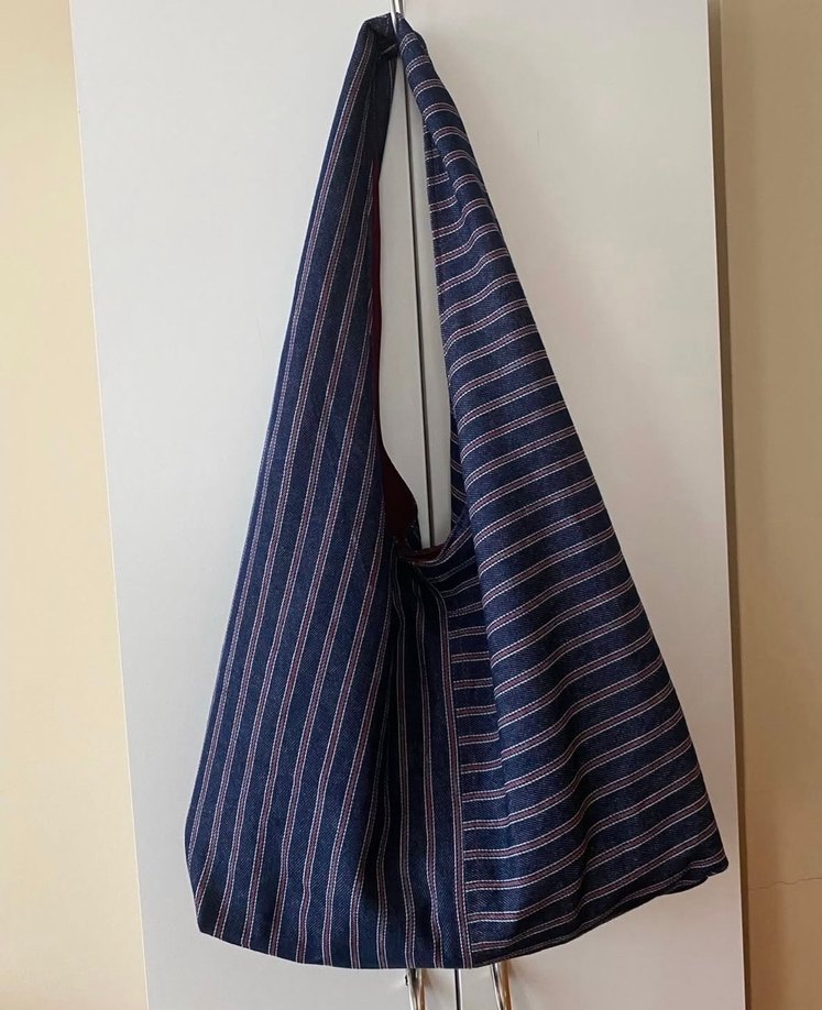 Lacivert kot tekstil malzemeden yapılmış, çizgili ve drapeli bohem tarzda kadın çantası. Minimalist ve retro havasıyla günlük kullanıma uygundur. Ayrı iki model