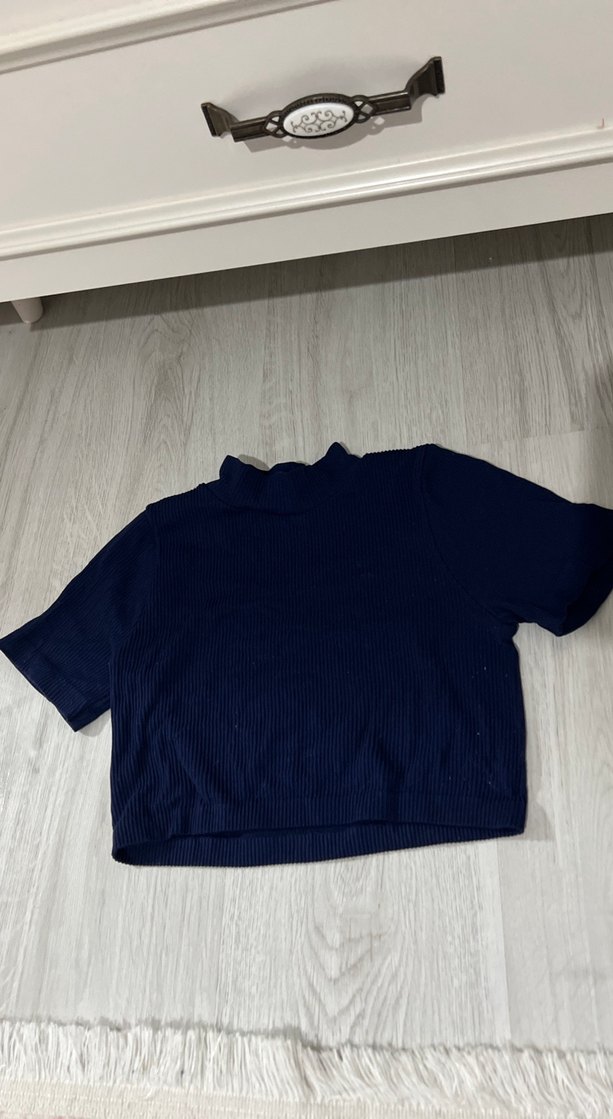 Lacivert çizgili crop