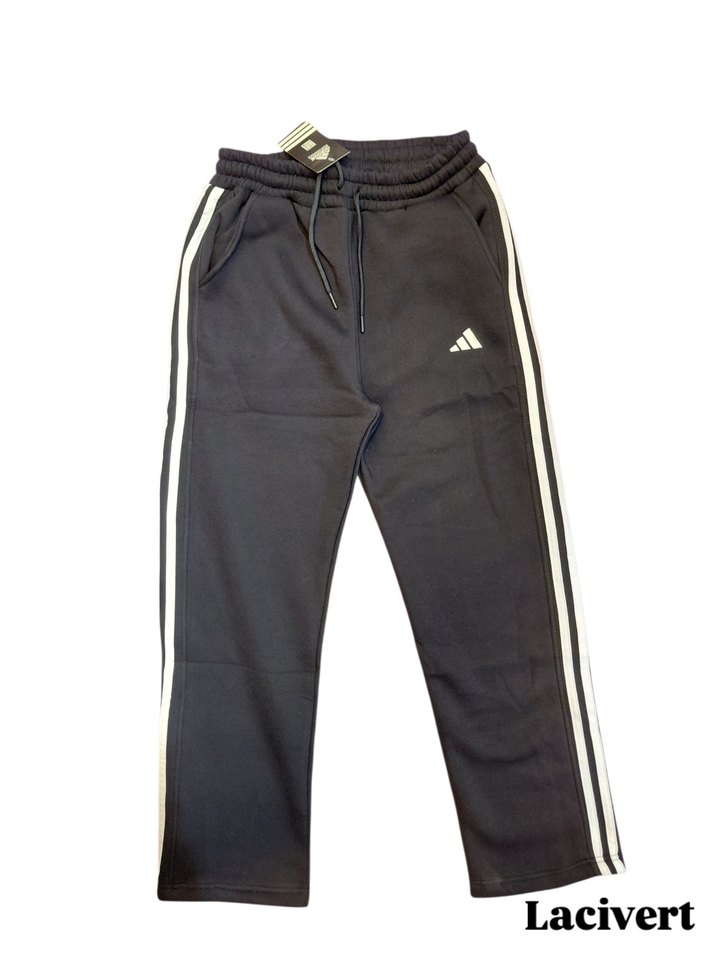 Yumuşak ve sıcak kumaştan, çizgili yanları ve bağcıklı beliyle rahat kesim lacivert eşofman altı, spor ve günlük kullanım için uygundur.