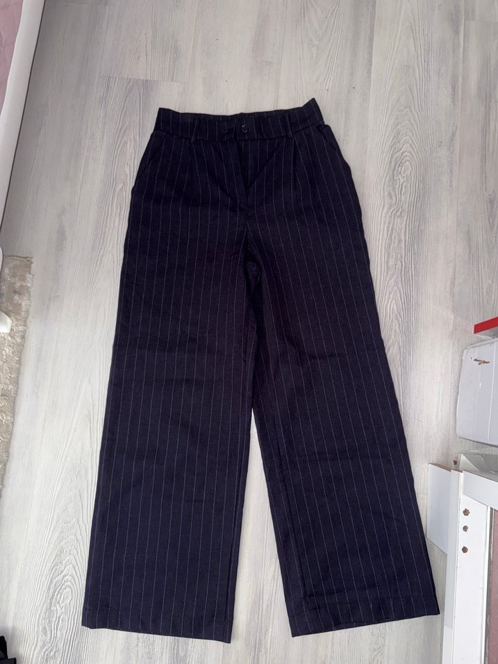 Lacivert Çizgili Kadın Kumaş Pantolon