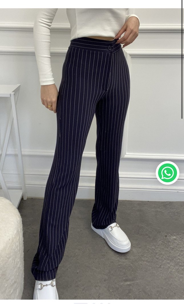 Lacivert Çizgili Kadın Kumaş Pantolon