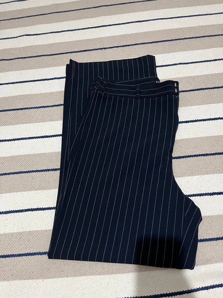 Lacivert Çizgili Kadın Kumaş Pantolon