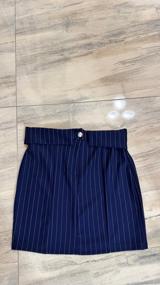 Lacivert, çizgili ve pilili etek
