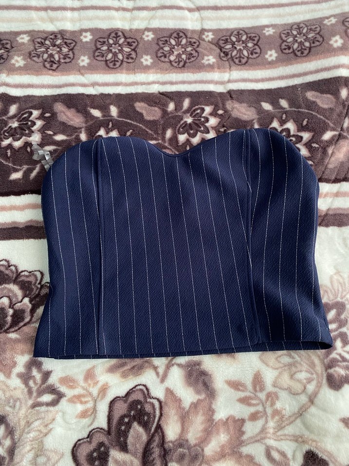 Lacivert cizgili straplez crop