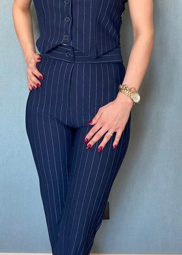 LACİVERT ÇİZGİLİ YELEK TAKIM