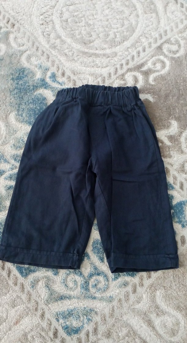 Lacivert renk, bol kesim keten midi şort Rahat kullanım için lastikli bel bantlı, sade ve günlük tarzda, açık hava için uygun.