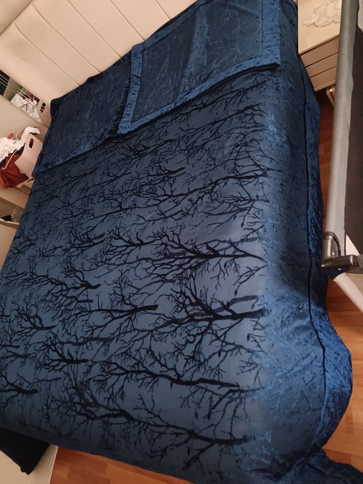 Lacivert Dal Desenli Yatak Örtüsü 270*260 ölçüsü