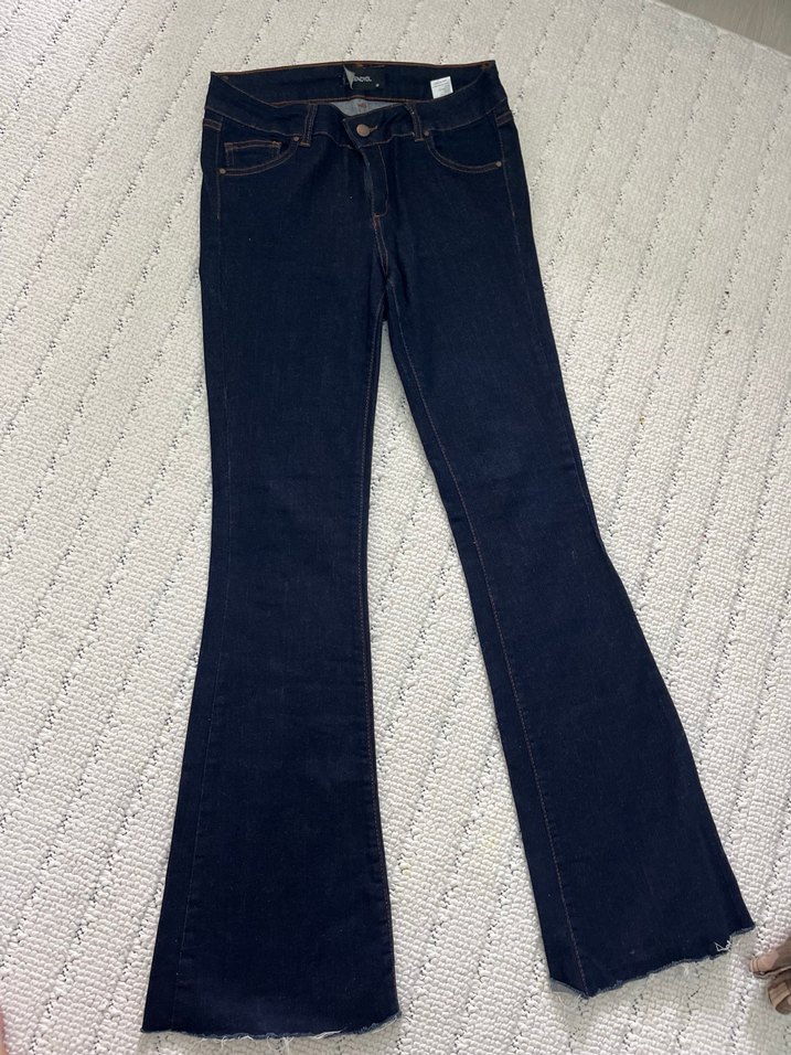 Dantel detaylı, bohem tarzda, fitted lacivert kot pantolon. Midi boyda, desensiz ve günlük kullanıma uygun.