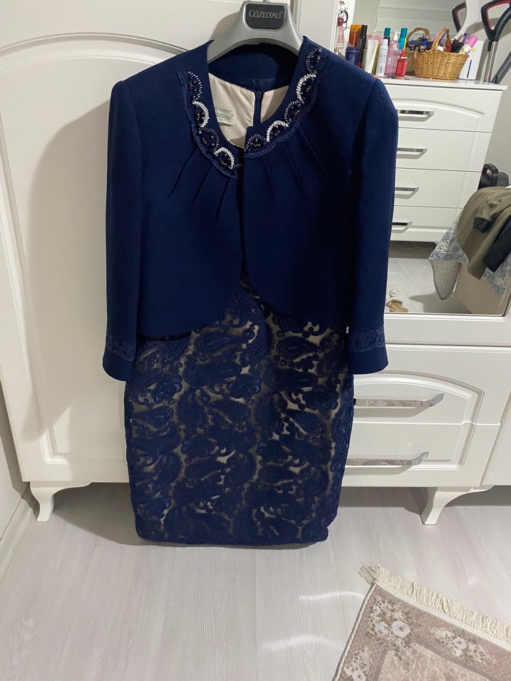Lacivert Dantel Detaylı Mini Elbise