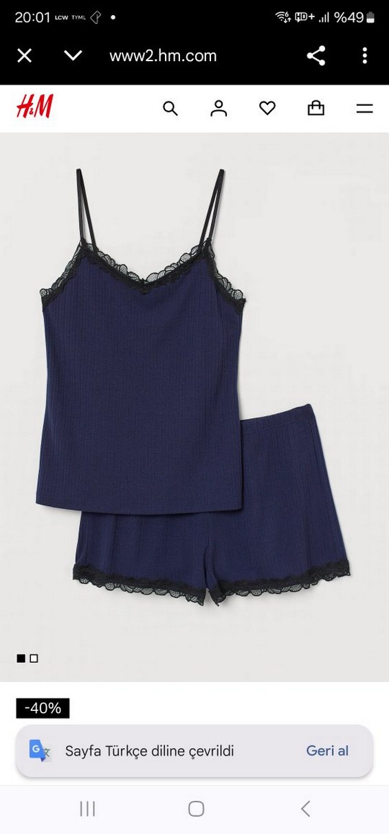 Lacivert renkli, dantel detaylı, askılı üst ve şorttan oluşan mini pijama takımı. Kısa boyu ve yumuşak kumaşıyla rahat bir uyku deneyimi sunar. hafif pamuklanma var kullanıma engel değil