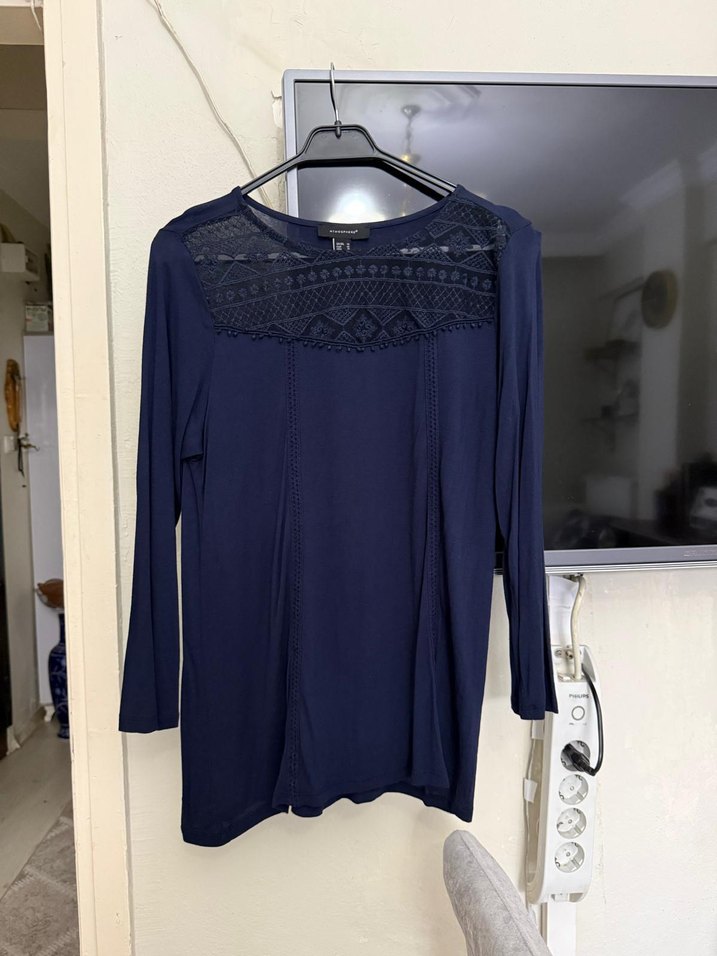 Lacivert Dantel Detaylı Uzun Kollu Bluz