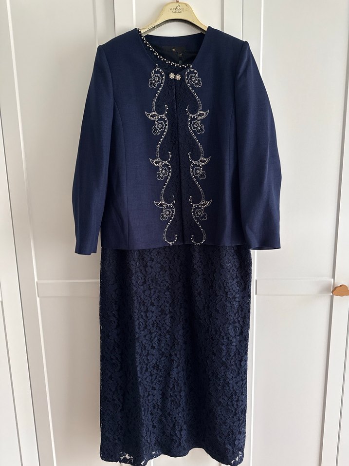 Lacivert Dantel İşlemeli Kadın Takım Elbise - Görsel 1