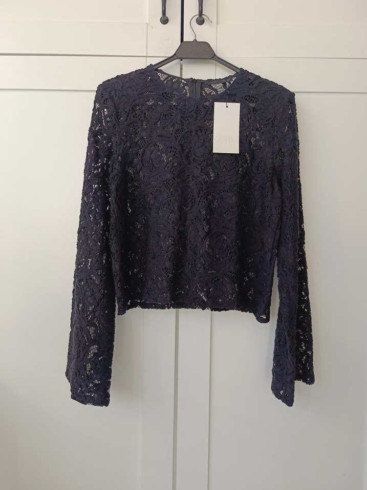 Lacivert renkte, uzun kollu ve yuvarlak yakalı bu bluz, işlemeli dantel örme kumaştan yapılmıştır. Rahat kesimi ve normal boyu ile romantik akşamlar için uygundur.