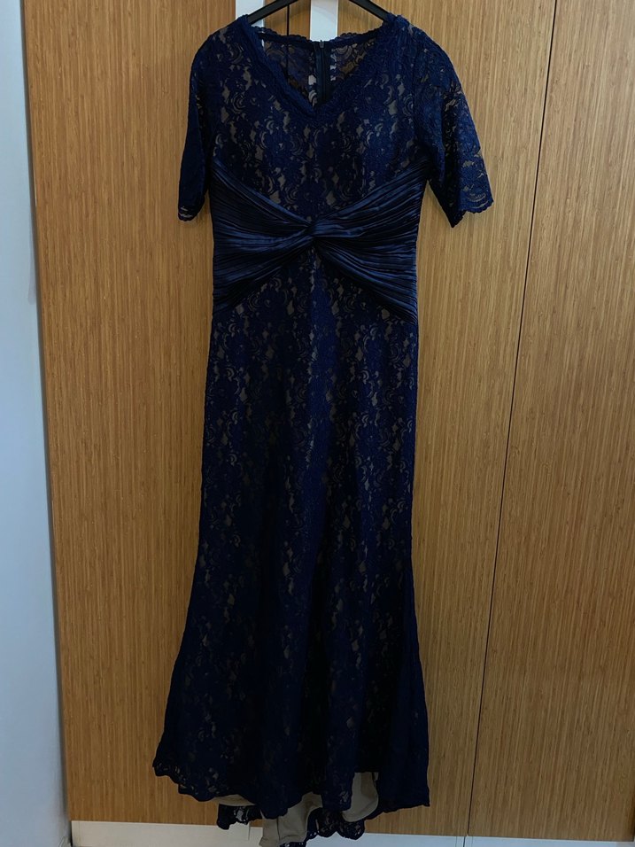 Lacivert Dantel Uzun Abiye Elbise