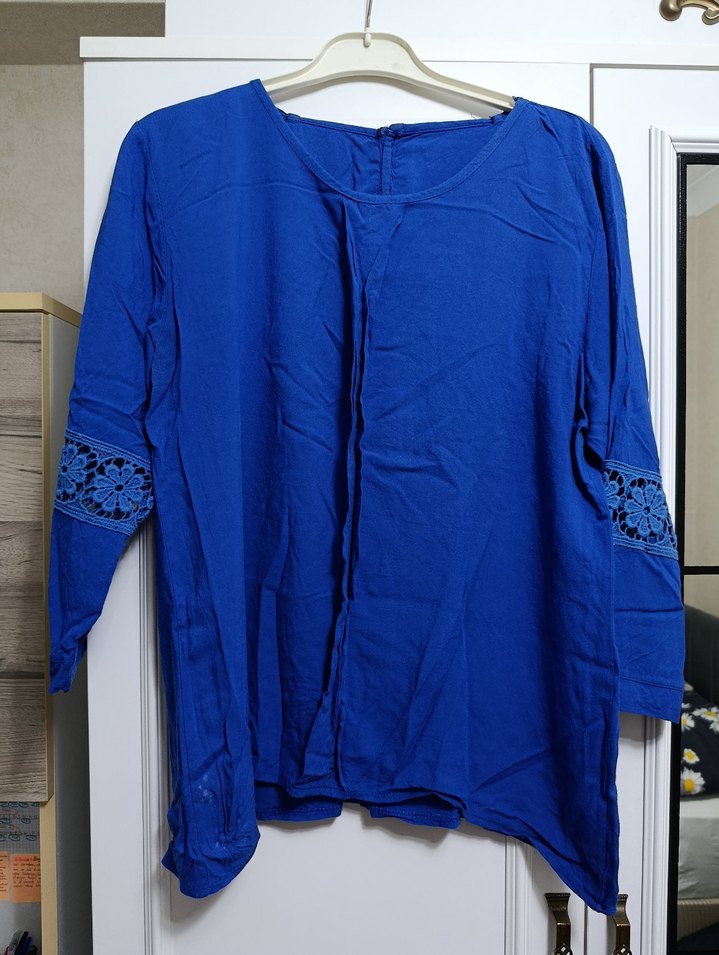 Hafif yanda leke var geçmiyor kalıcı ama belli olmuyor giyince arkası açıktı dikilmiştir isterseniz açabilirsiniz orayı kolları dantel detaylı (M-L) bedenleri icin uygundur.